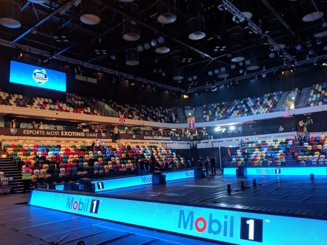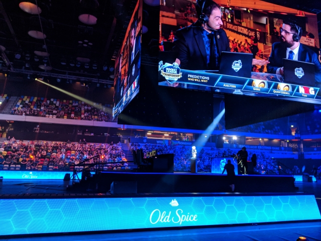 So, the event itself - held at the Copper Box arena in the Olympic Village, Stratford was an absolute treat. Owen and I arrived in this awesome venue that was lit-up by a 4-screen set-up in the middle of the arena, hanging above the two rows of three PCs. In the centre of the two rows was an epic trophy that was only going to be lofted by one team at the end of the 3-day event. The whole place was lit up with spotlights, huge screen panels and looked the part both on-camera to the tens of thousands watching online, and inside They did a massive job of making a spectacle of the small footprint the stage filled compared to the remainder of the arena.