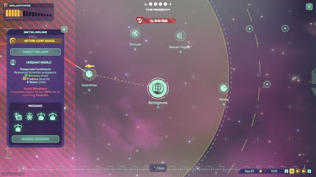 There’s a sense that you’re never safe in Jumplight Odyssey, as the Zutopans are always on your tail. When you look at the Star Map, you’ll see a countdown indicating how long you can stay in your current Star System before you need to escape again to a nearby one. You do this by Jumping, fueled by the titular Jumplight resource, allowing you to travel at warp speed to get away in a hurry. Every time you escape, the timer until the Zutopans reach you will reset. You’re basically on the run until you reach the Forever Star, and judging by the size of the Star Map, it will take quite some time to get there. The galaxy is randomly generated for each run, and there are plenty of biomes to explore along the way, offering various resources for you to use on your journey.