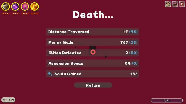 The controls here are quite simple to use, if you are playing on the Switch, you will move your character around using the left thumbstick, and to dash to avoid enemy attacks you use the B button. You won’t have to worry about swinging your weapons around and this game automatically swings your weapons around so you won’t have to worry about button mashing to take down all the enemy spirits coming at you. If you run out of health you will get a game over and get sent back to the beginning of the run to start over again.
