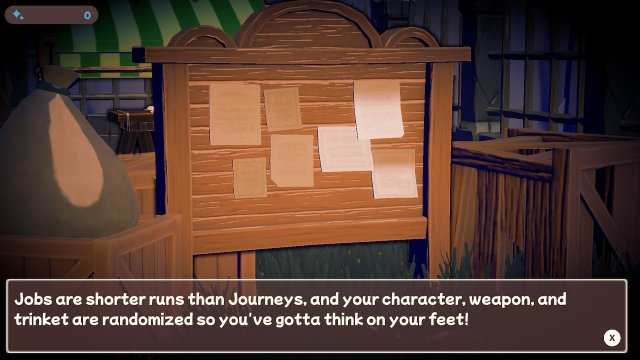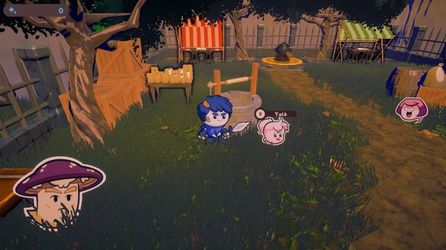 The game begins in a quaint village where a group of adorable ghosts live. If you have ever had a chance to play Outbound Ghost you will recognize the art style in this title as it was created by the same developer. This game is full of adorable 2D character sprites in a variety of 3D cel-shaded environments. Before going out on a mission, you can visit with the resident ghosts, like a talking mushroom, and hear useful information about things like the Job Board, or tidbits like: “ummm yummy yummy ketchup! :)”.