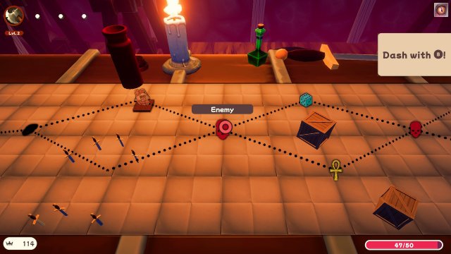 When you are ready to head out on a mission, visit the Journey Globe where you are sent out to defeat the evil souls. You are first taken on a map that has nodes and branching paths where you can select which to follow. The nodes that you visit represent battle stages against enemies; campfires to recover some health and transform weapons; stores to purchase and upgrade weapons, or trinket shops.