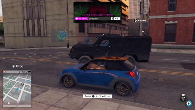 Where Watch_Dogs had experience points, in Watch_Dogs 2 followers are given after completing main missions, side missions or when taking photos of landmarks. After getting certain amounts of followers, you get what are called research points to level up different things like hacking forklifts to help you reach higher spots.