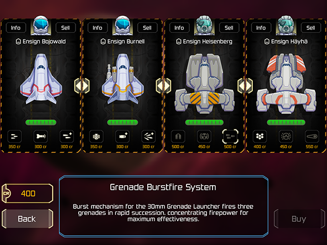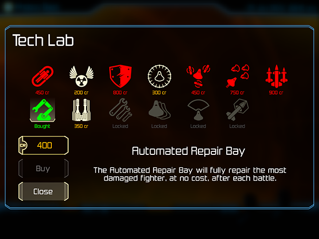 The ship upgrade system helps make up for that, though. Each type of ship features four upgrades that you can purchase with your hard-earned credits, ranging from more bullets per shot to special weapon boosts. There’s also a tech tree that provides universal upgrades like increased ship armor and free post-mission repair. Both sets of upgrades improve your odds of powering through enemy squadrons, but individual upgrades come with two drawbacks. First, since each new campaign features a fresh set of ships, the upgrades won’t carry over. And second, when a ship blows up in combat, it’s gone for good.