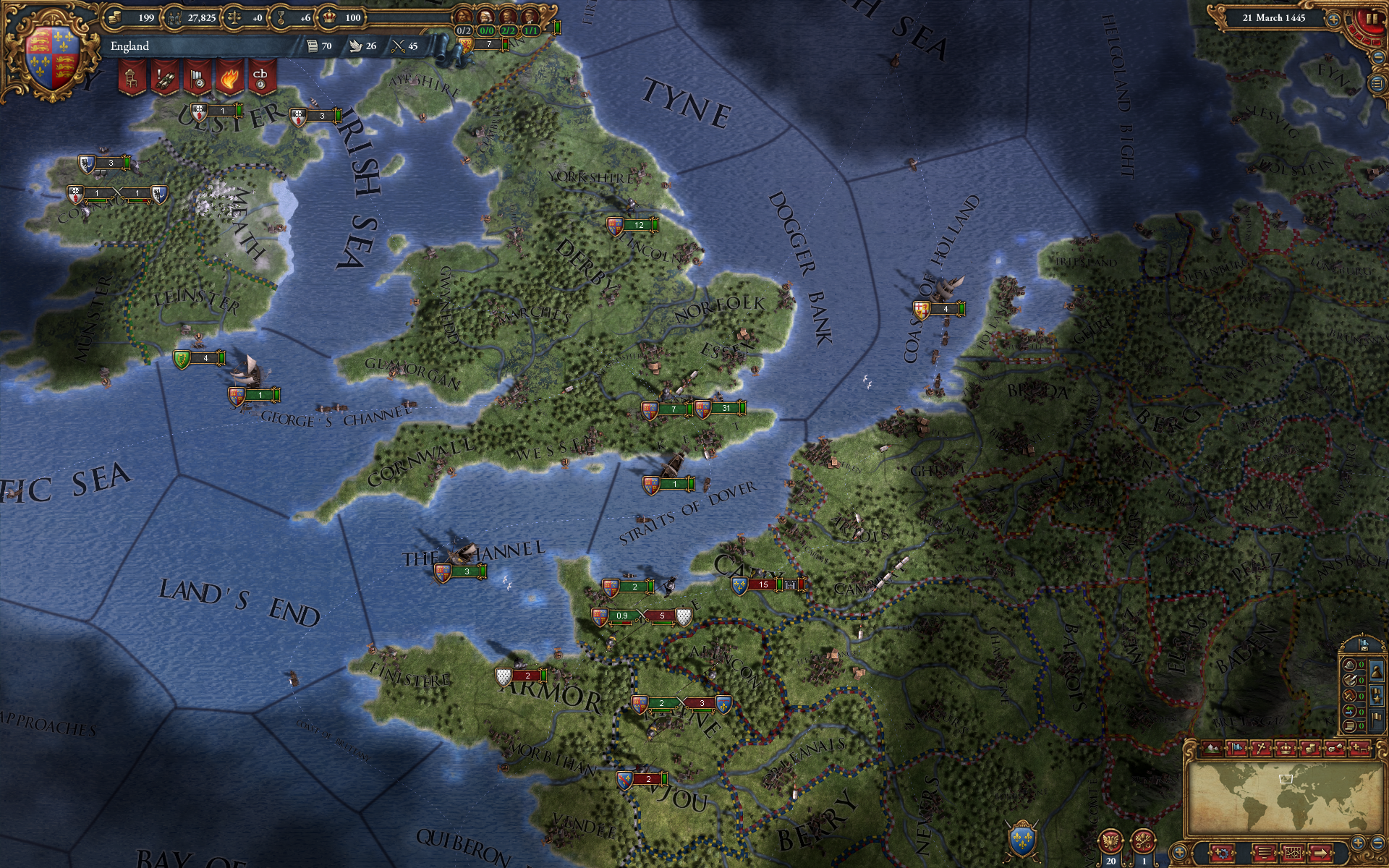 So while the methods of peace have been revamped, what about the machines of war? After all, it’s tricky to become a global power without stepping on a few toes. Warfare still works on the same basic principals; so a computerised series of dice rolls (all made behind the scenes) based on army size, modernism and leader ability decides the fate of battles. Again unlike CKII, having a larger army isn’t the key to success. The technological development of your nation is also important as you can use military Monarch Power to upgrade army tech and research military focused national ideas. It means battles aren’t as predictable as in Crusader Kings, and there’s much more focus on maintaining a strong standing army, mirroring the methods of the time period.