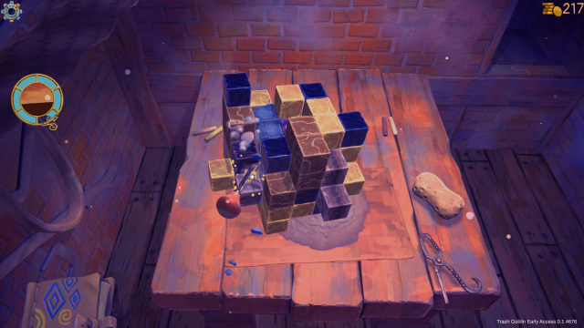At this point, you’ve got a grimy knick-knack in your possession, and while you can sell it as is, you’ll part with it for a higher price if it's squeaky clean, which brings us to Trash Goblin’s Sponge mini-game that has you scrub away the dirt on the object’s surface, scratching that satisfying itch as you fill the clean-metre to 100% — very PowerWash Simulator–esque in my opinion. Sometimes, customers will request additions to items, such as combining a Natural Charm and Lute or attaching a Tassel to a Hairpin. To do so, you’ll use your Upcycling Tool, which allows you to connect trinkets to open sockets; it’s very easy to do, as the sockets are clearly marked in the mini-game, and the attaching process only requires a simple click of your mouse button.