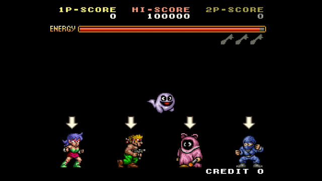 This remake will let you continue as many times as you want, you just have to make sure you hit the button before the timer runs out. Because of this addition, it won’t take you very long to beat the whole game. There are multiple difficulties if you want more of a challenge. Though I do want to go back and play again and see if I can improve my score and get one of the alternate endings. Avenging Spirit is a fun platformer arcade title that is enjoyable to play and unique in that you can play as many different characters through one playthrough!