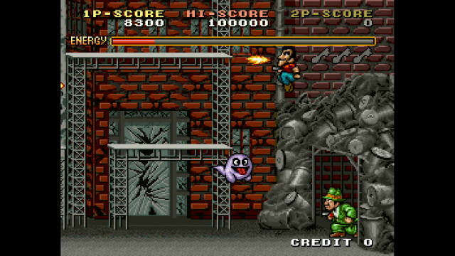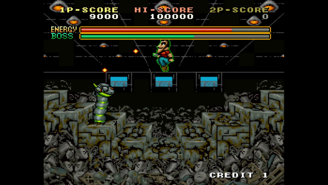 The bonus of playing Avenging Spirit on a home console instead of in an arcade is you won’t spend all your coins trying to continue the game. The visuals are bright and colourful with fun characters that you can possess. Word of warning though, the dragon character looks cool and can breathe fire but he sucks at jumping! The good thing is that each form is only around until it runs out of health then you can switch to another character. The music is super catchy; it gets a bit repetitive but that’s not a big deal. After a while you don’t even notice because you are so busy looking for keys and new characters to possess.
