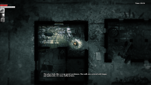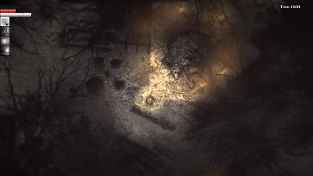 On a technical level, Darkwood is one of my favourite atmospheric horror games. It features Lovecraftian-inspired graphics and a darkly tense score by Artur Kordas. When this is coupled with a claustrophobic cone-of-vision and challenging nature of the game, it becomes clear that this is a horror experience that does not need any jump scares. You will not be terrified by monsters jumping out at you from the darkness, but rather the possibility of that happening. Much like the best films that use atmosphere as a device of horror – such as those developed by David Lynch and John Carpenter – all the terror in Darkwood comes from its ambience; the sounds, the music, and the suspense of how bleak the woods are presented.