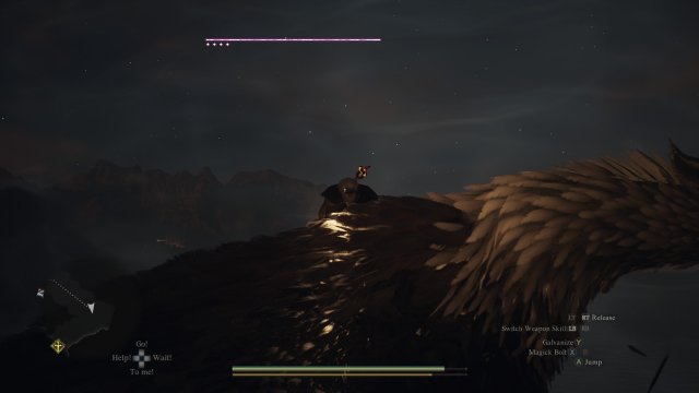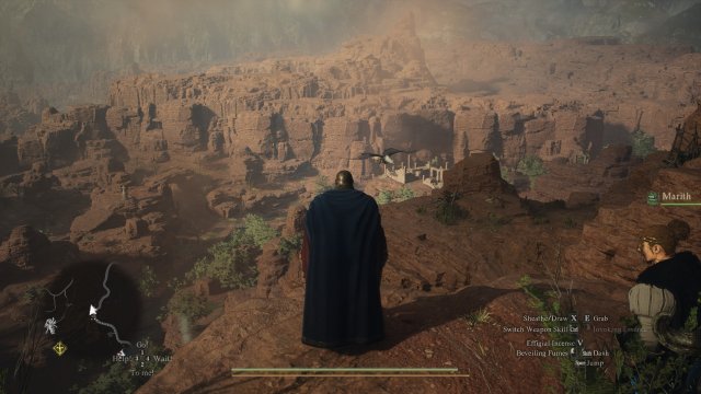 As I mentioned before, you often wind up battling with gigantic creatures that act as mini-bosses, theme music and all. It’s in these fights where I feel Dragon’s Dogma 2 shone, as each role seemed to be equally important: the frontline tank could draw attention and hamper the foes' movement while magick users could either rain down damage, boost allies or heal the wounded. More dextrous members of the team, on the other hand, clamber up and down the large enemies, finding and exploiting weak points to both cause massive damage and confusion! I mean, you try focusing when an ant keeps biting your eyelid. The feeling of teamwork and accomplishment was amazing, though sometimes the Pawns were less stellar in their performance. One memorable fight with a griffon had my beloved Pawn swingin' his heart out at the most despicable of enemies, the empty air, while the rest of us fought tooth and nail to keep the giant cat-bird from making us its evening meal. Thanks, Marith; love ya, man.