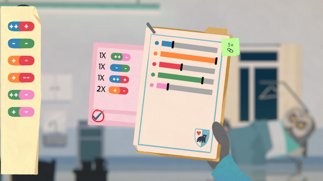 When Finley gets to work each day, he’s assigned patients through the help of his handy digital app on his phone. The app will tell you which room you need to go to and which of the diverse mini-games you’ll play to treat your patients. In one, you need to hold a collection of buttons together simultaneously (which is why it is universally recommended you play Fall of Porcupine with an Xbox controller). In another, you need to press the buttons in a rhythm to hear your patient's heartbeat. Personally, my favourite one was a tie between a basketball match with Mia and calculating the medicine I had to give to my patients. It’s funny because the latter was one I thought I would hate, but it was a lot of fun.