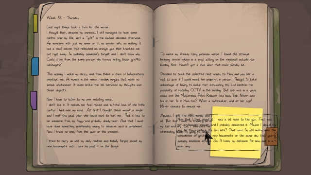 The game is also inconsistent with how it handles your choices, particularly with the sticky note mechanic. At the end of each section, Frank and Drake sit down with their journals to write out multiple paragraphs about what happened and any other thoughts on their minds; this is when you can select an important passage to drag onto a sticky note, leaving it for the other protagonist on their shared fridge. Whatever you write affects their Bond, which is depicted by a bar with three sections: Close, Neutral, or Distant. The problem is that the game doesn’t always give you multiple choices, so you don’t have a lot of control when it comes to deciding how they interact. For instance, the duo had a Close relationship in my second playthrough, but when Drake asked Frank a personal question, the only sticky note I could leave was a distant response, which dragged the Bond back down to Neutral. In another playthrough, they had the worst relationship ever, and yet the epilogue depicted them as close buddies; at that point, I could only shrug. How did my choices lead me here? I had no clue. With that said, no matter where their relationship fell on the spectrum, Frank and Drake always felt more like Frank or Drake to me, as they don’t really help each other investigate the mystery as much as you think they would.