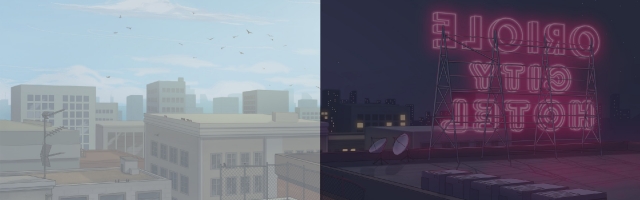 The game’s setting is a fictional American place called Oriole City. Frank is a resident and superintendent of a dilapidated apartment building, and he’s been suffering from amnesia for a year, which means he can’t remember his loving elderly dog, nor can he pinpoint why he has a strange feeling that the other residents might know more about him than they let on. Drake, on the other hand, has all his memories intact, but he’s dealing with the loss of his mother while also adjusting to his new living situation as Frank’s roommate, and he doesn’t know who (or what) he is. There are a few oddities about Drake that you’ll quickly learn about: he needs to feed on blood, he can’t go out at night, and he has the ability to see ghosts.