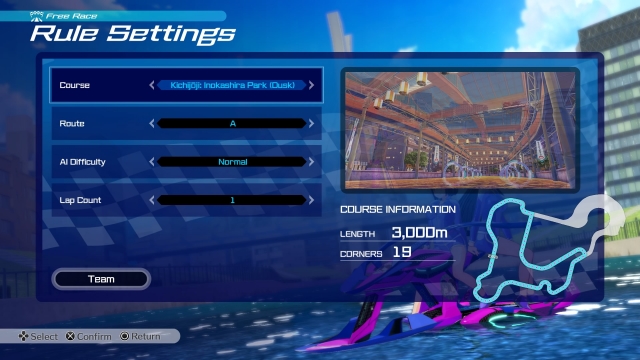 There are multiple story arcs available to play. Once you finish the story of Rin and Misa, you can play as one of the other teams that you challenged. In total, there will be eight story arcs to play though, once you unlock them. If you don’t feel like playing the story you can play online or do some time trials to try to get the best lap and overall race time for each of the courses. I appreciate that when you are choosing which track to challenge the layout of the track is shown and it tells you how many corners there are. If you find taking corners cleanly hard, it might be best to practice here.
