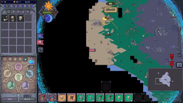 As each run begins you must make sure not to squander resources as they are quite scarce. You start with skeleton bits, but as you progress through you run the bits and races get… silly. Who wants a part zombie, part fairy lizard person that shoots laser? How about a wizard orc that has swamp-person legs and hits things with a pair of axes? Yeah, those are the boring ones.
