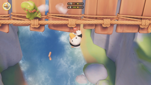 The visuals in Party Animals are so fun and vibrant. Once all the animals are unlocked, there is a selection of 30 different animals to play with, ranging from cats to bunnies, and gorillas to birds like a Canada Goose (he even has a winter coat!). There are so many adorable creatures, each with a unique personality, and I had a hard time deciding who I wanted to be. Every round I played, I tried to switch who I played as. At times, it made it harder to figure out which of the current animals I was until I saw the little arrow over your head that pointed it out to you, labelled YOU.