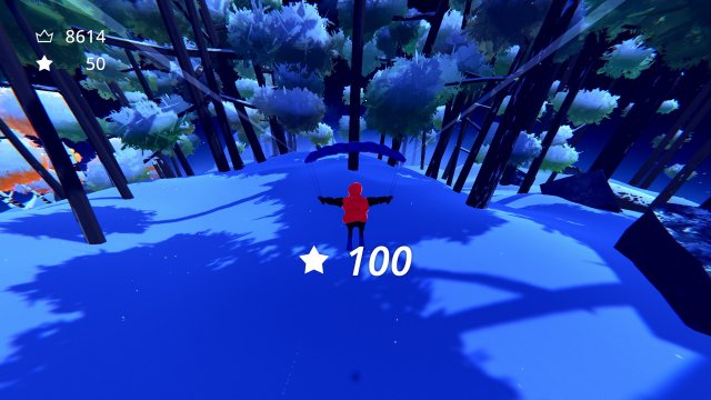 The game is all about skiing at your leisure, going down mountains and pulling off sick tricks. You can also pull out a parachute at any time to glide over the snow, should things get a little too crazy. The controls are simple to grasp and make it easy for anyone to pick up and play. It’s a little annoying to see the controls pop up every time you begin skiing, but it’s helpful for when you need a quick refresher.