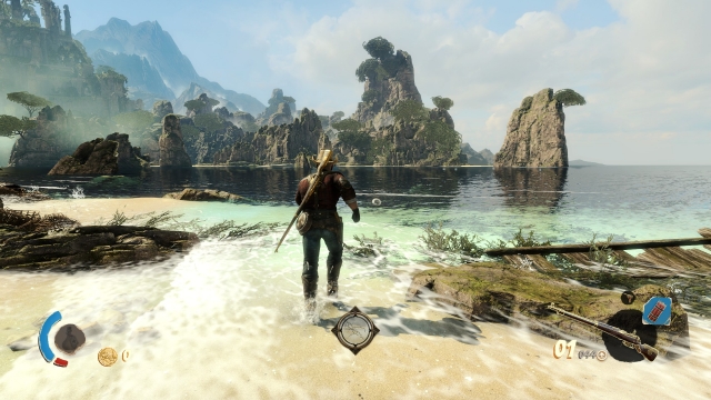 The latest DLC for the title takes us to the isle of the damned, and is the first part of a trilogy entitled The Thrice Damned. It’s a change of scenery from the ancient ruins that we have previously been exploring with shipwrecks and pirates amid tropical looking beaches the order of the day here. The main game was a really pretty affair, with tonnes of detail put into the environment, so it’s no surprise to see that continue here. There’s plenty of little nooks and crannies with hidden things to find, and the level is diverse and scenic. Not that you’ll get a huge amount of time to stop and admire it though, as this level is even more choc-a-block with nasties after your blood.