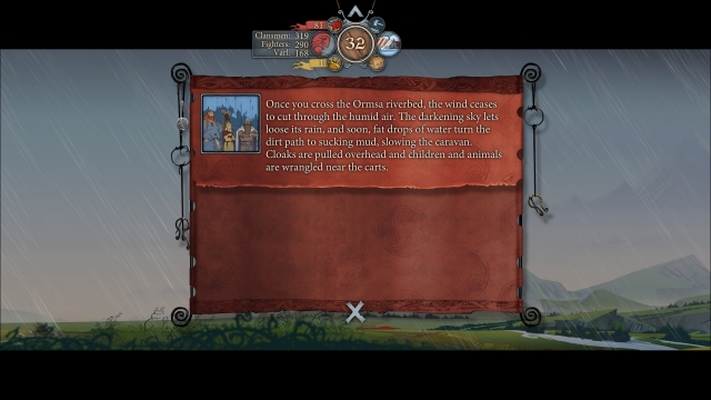When on the move, The Banner Saga 2 plays similarly to classic PC title The Oregon Trail. As my caravan traveled further eastward across the continent, I once again sat in awe at the beautiful hand-drawn landscapes complemented by the brass and woodwind melodies of returning composer Austin Wintory. Little has changed from the first game, but that’s not an issue. To me, there aren’t many games as pleasing in their combination of visual and audial elements.