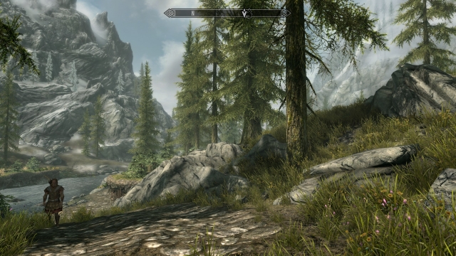 So what’s new in this remastered Special Edition of the game? Basically the game has been transferred into the newer 64-bit engine that powered Fallout 4. This has a number of behind the scenes benefits but the main one being that it allows some nice new graphical effects such as god-rays (light shafts visible through branches and other openings) and volumetric mist and fog.