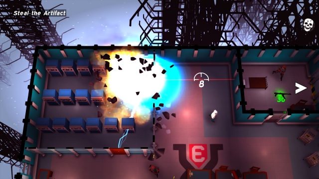 Aside from the time slow down mechanic Time Recoil is a pretty by the numbers affair. Players make their way through the level, finding guns and ammunition so as to clear a path through to the end of the stage. It controls fine, and the time slowing down is a neat effect, but there are issues like the ammo drops are randomized, leading to situations where the same strategy you used to get through 90% of a level might leave the player standing in a room with no options other than to get shot. In another game such randomization might add some replay value, but Time Recoil is as much a puzzle game as it is an action game, and when the layout of the puzzle suddenly changes it just comes across as unfair. It doesn’t help that the melee is completely useless, so on those runs where you find yourself lacking ammunition you basically have no recourse but to restart the level.