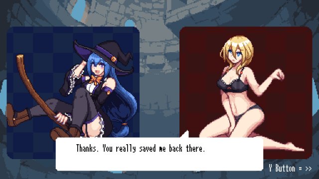 There are 10 different characters you will meet on your playthrough; the first that you will be playing is Ibis, who is a self-proclaimed natural-born witch. You will be introduced to the other girls as you are trying to rip off their clothes. This sounds like a porn-type game, and the characters even admit that in the game, but there is a bit of a story behind it. Someone has cast a spell on the girls’ clothing to make it take control of the wearer; there is nothing they can do to fight against it. Until Ibis comes along and realises what is going on, the only solution is to rip off all their clothes until they get to their underwear. Sorry to disappoint you, but there is no total nudity here; the most you see is a bunch of cute girls in their fancy undies.