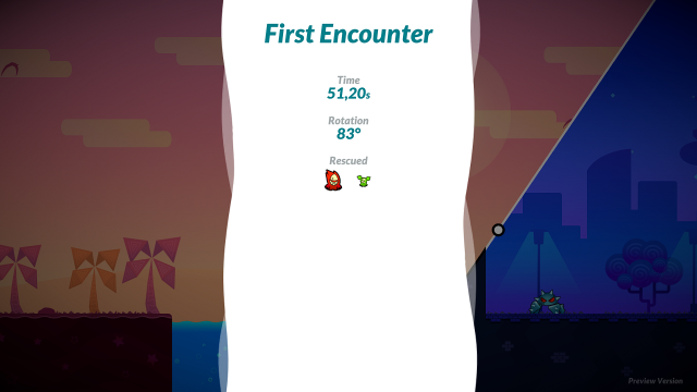 It has been a little while since I wrote the preview for World Splitter. Playing it now the game still feels like a new experience that is unlike other puzzle games I've seen in the past. World Splitter follows the story of a super-cute alien along with his crew who have crashed the spaceship. The player takes control of the captain who is trying to rescue all his brightly coloured crewmates that are scattered around the different levels. To navigate the level you have to learn how to control the void between two different dimensions. This seems very intimidating but the captain has the ability to turn and rotate a world-splitter line. This line will let you show parts of two different dimensions exposing platforms and walls to help you traverse the level to collect your fluff balls crewmates. Once you have collected them then you make your way to the exit on the right hand side of the screen.